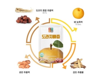- 도라지와 배 함량이 높은 제품: 최소 80% 이상 함유
