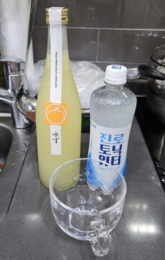 - 유자 하이볼: 츠루우메유즈 + 탄산수 + 얼음
