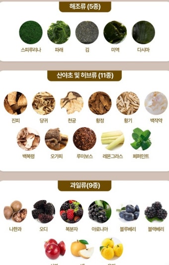 황성주 생식의 가장 큰 특징은 원재료의 다양성과 조화입니다. 대체로 50가지 이상의 자연 원재료가 혼합되어 만들어지며, 대표적으로는 다음과 같은 성분들이 포함되어 있습니다.