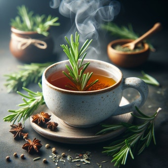 로즈마리 잎을 말려 끓인 차로, 허브 특유의 향과 함께 다양한 건강 효능을 누릴 수 있습니다. 마치 아로마테라피를 마시는 느낌이랄까요?