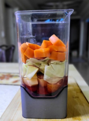 - 재료: 사과 1개, 당근 1개, 물 약간